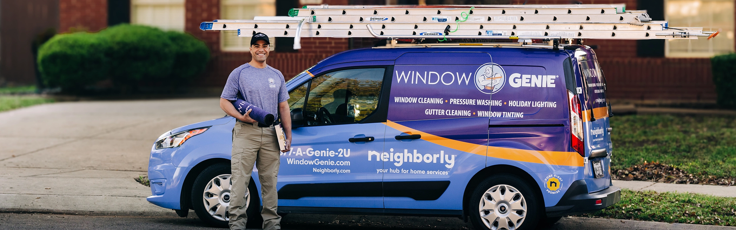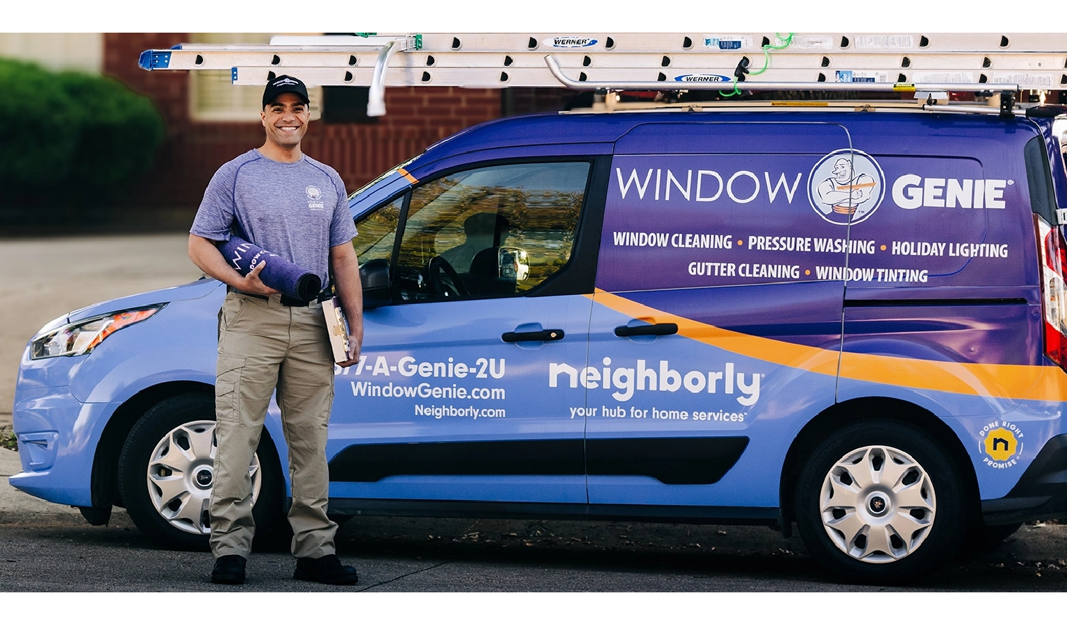 Done Right Promise logo with TMEstablished in 1994, Window Genie is dedicated to maintaining and beautifying homes and small businesses by specializing in window cleaning, pressure washing, holiday lighting, gutter cleaning, and window tinting. Like all Neighborly brands, we are locally owned and operated.